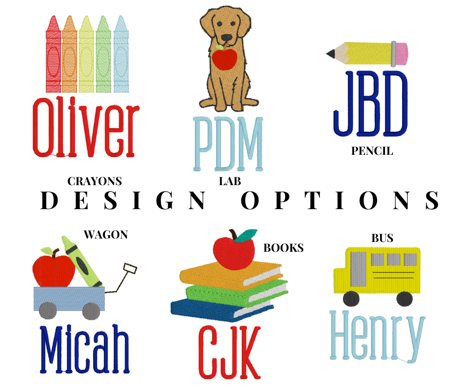 The cutest embroidered back to school outfit for boys! Personalize with your choice of left chest design and coordinating gingham shorts.