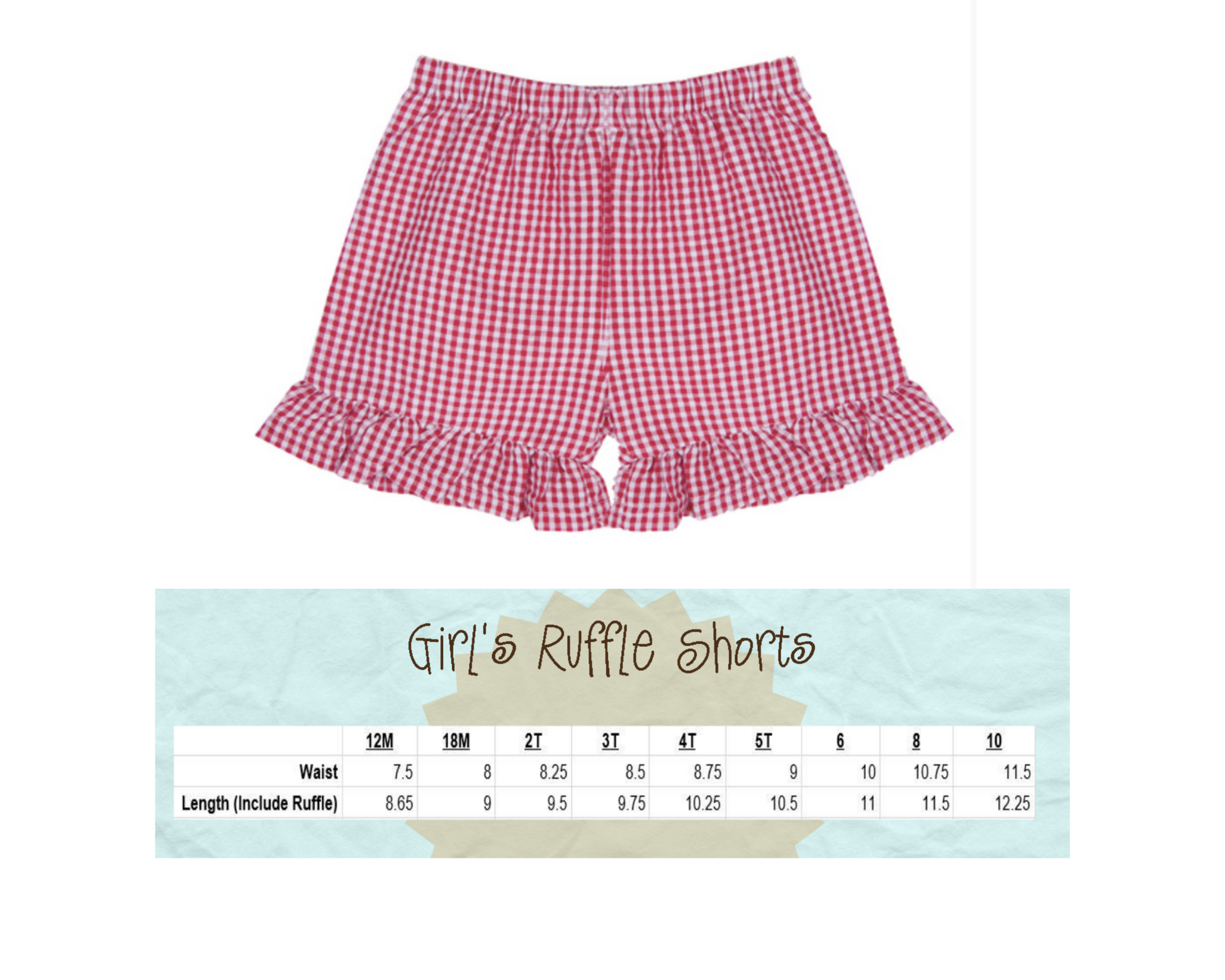 This shirt is embroidered and the coordinating red gingham or seersucker shorts can be added to make it a complete outfit.