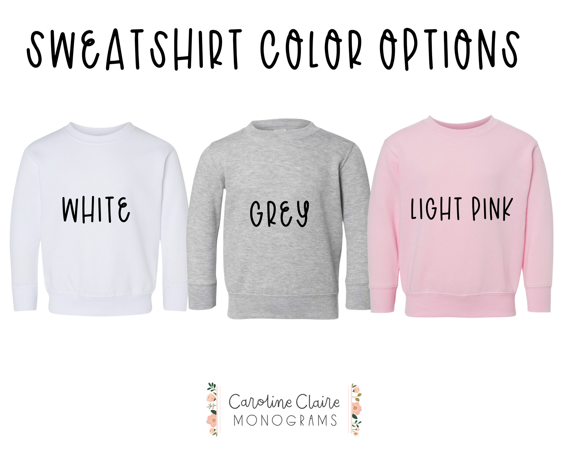 Sweatshirts are a 60/40 cotton/polyester blend. They fit TTS but we recommend sizing up if in between sizes. Please check the size chart before ordering because we do not offer returns or exchanges on personalized items.