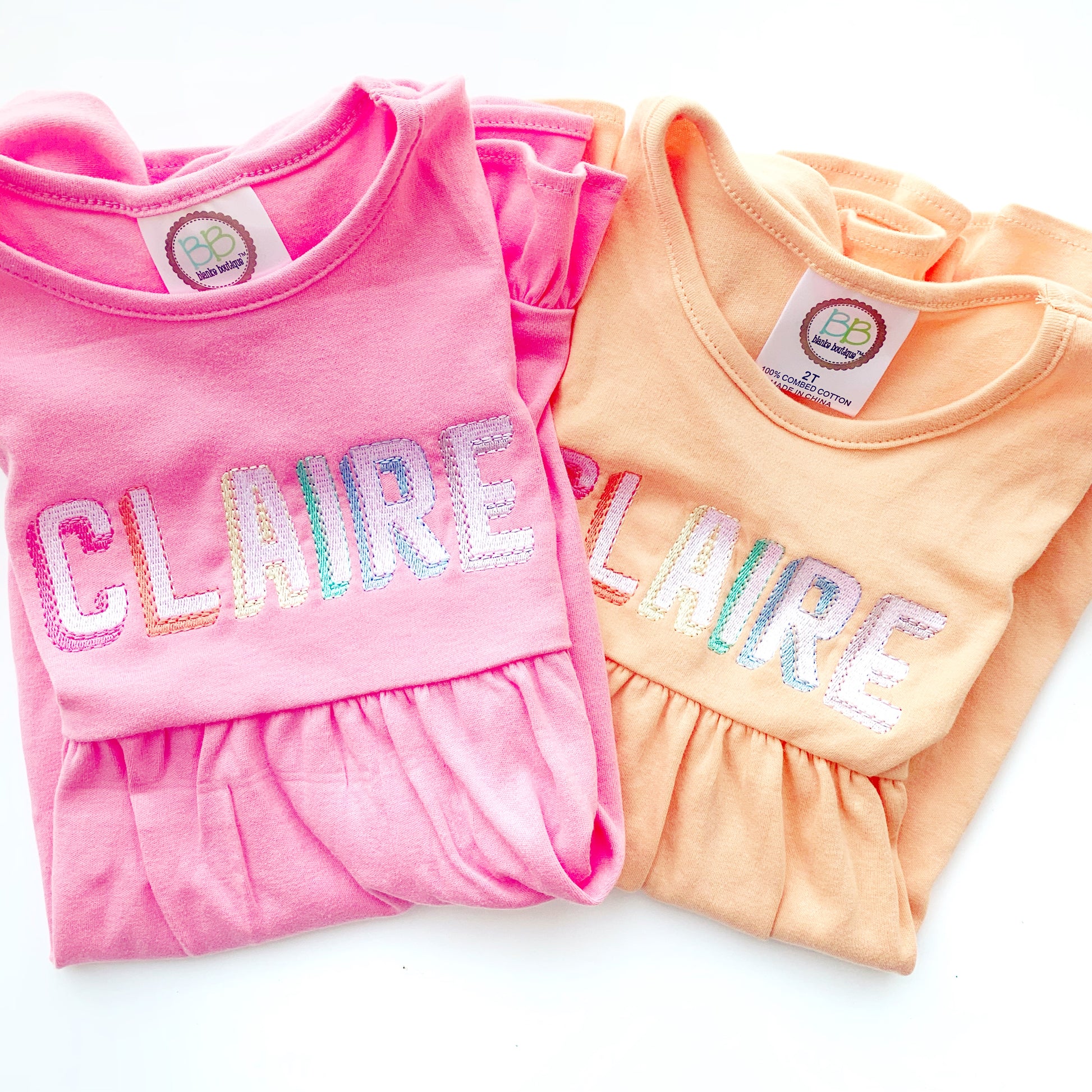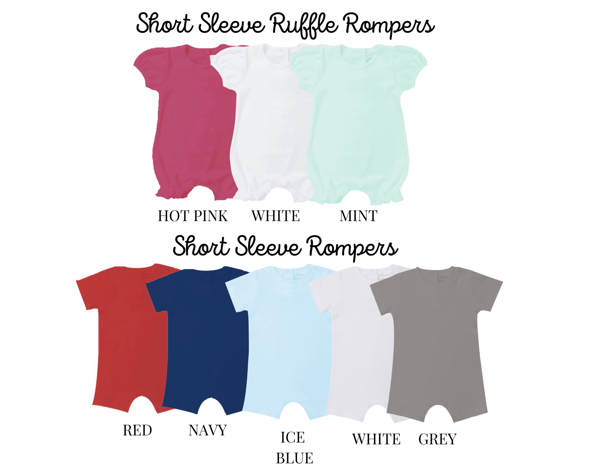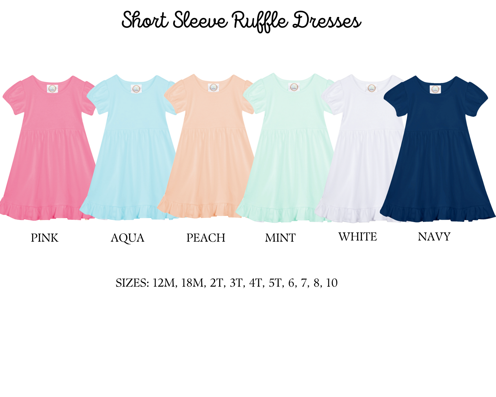 Available as: short sleeve ruffle tee, short sleeve ruffle dress, unisex bubble and boys short sleeve tee