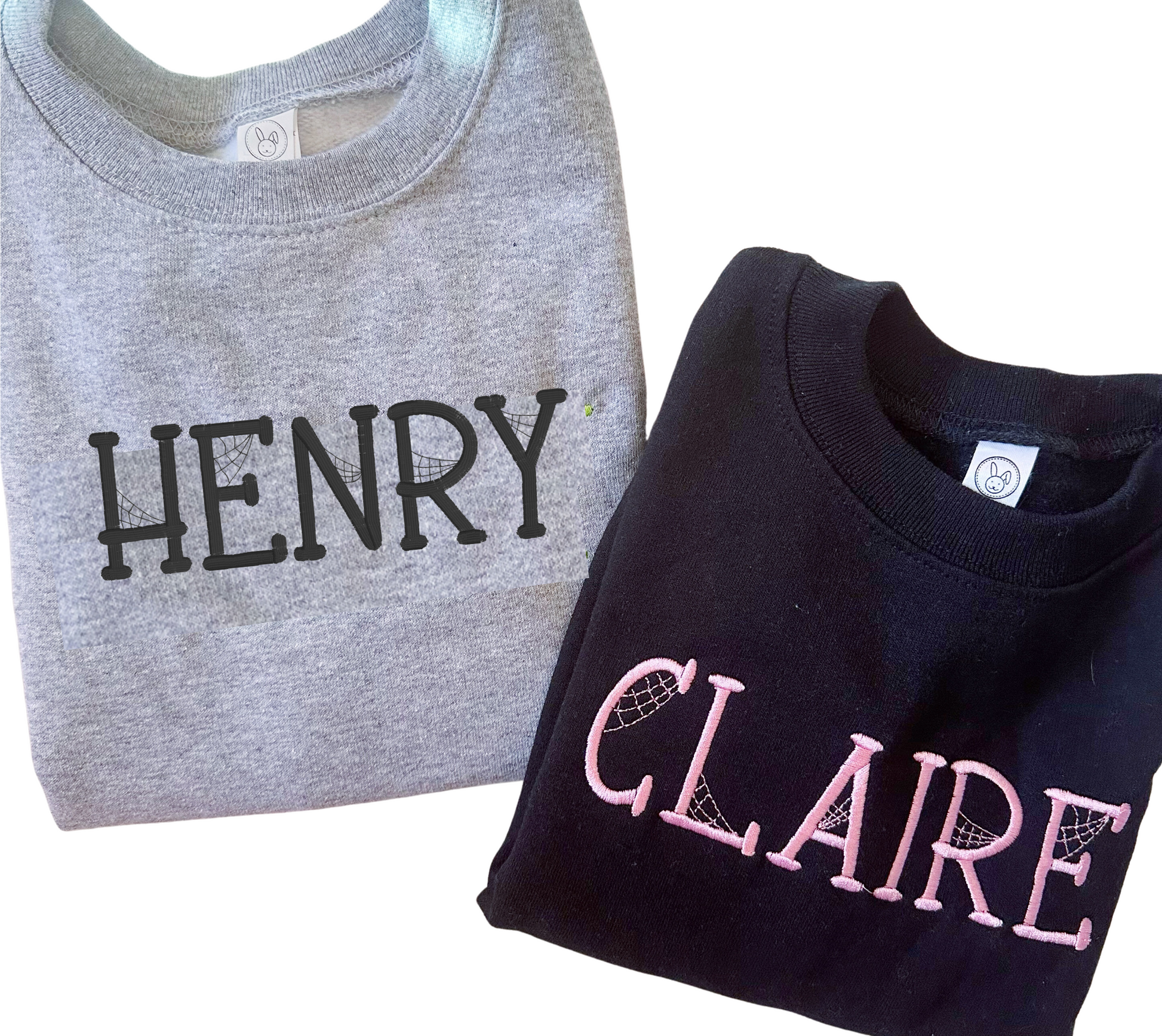 Your kiddo’s name comes to life in a fun, spooky spiderweb font — perfect for trick-or-treating, pumpkin patch adventures, or cozying up for a Halloween movie night. Sweetly spooky without being too scary, it’s just the right vibe for fall fun! 🎃✨
