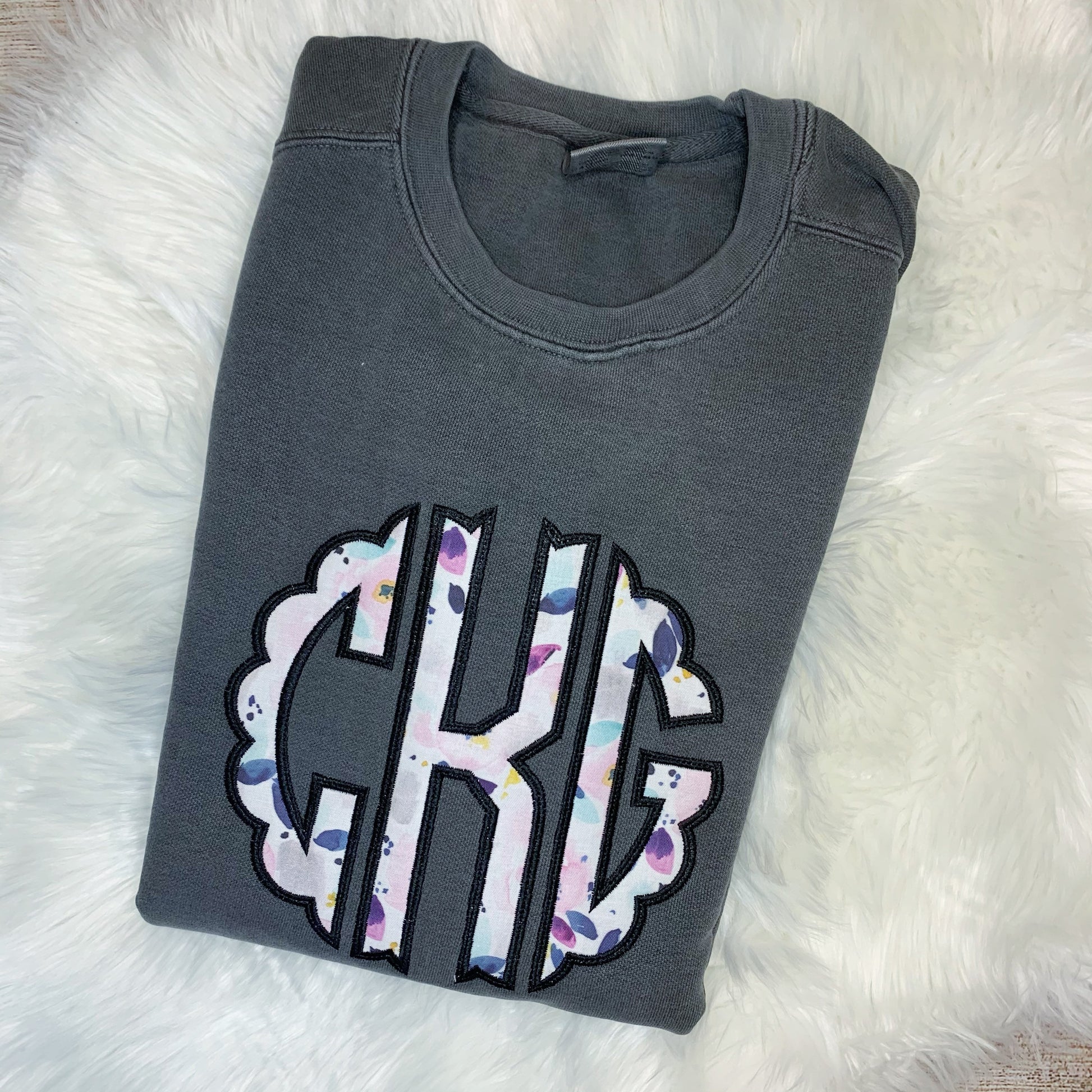 [the photo of the listing is a navy sweatshirt, light pink thread, fabric #5 + diamond stitch monogram]