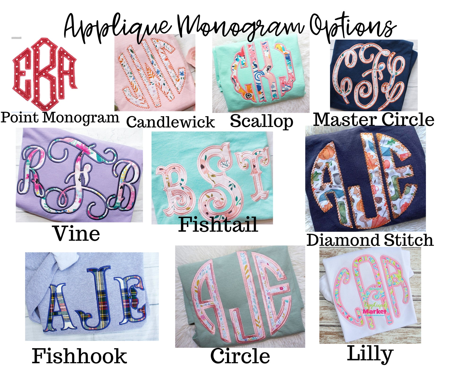 The monogram size is approximately 8"x8"